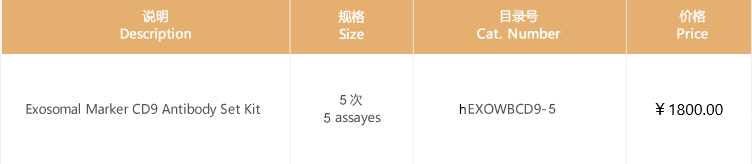 Exosomes are small membrane-bound vesicles that in recent years have emerged as important molecules for inter-cellular communication. Exosomes are produced during both normal and patho/physiological conditions, and cancer cells have been shown to secrete exosomes in greater amounts than normal cells. CD9 is a 24 kD type III transmembrane protein. It is a member of the tetraspan family (spanning the membrane four times) found on platelets, B cell progenitors, activated lymphocytes, granulocytes, endothelial cells and epithelial cells. CD9 is also abundant in exosomes embranes.