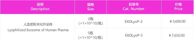 潤基生物提供的超純外泌體粉末是通過濃縮柱和 SEC 柱(Size Exclusion Chromatography)連續(xù)濃縮和純化,然后經(jīng)過真空冷凍干燥獲得的。外泌體粉末可來自各種體液(血清、血漿、尿液、唾液、乳汁等)和細胞培養(yǎng)上清液。粉末化的外泌體需經(jīng)過總蛋白含量(BCA 法)和納米粒子跟蹤分析顆粒數(shù)的測定等驗證,與新鮮的外泌體相比,冷凍干燥不會改變外泌體蛋白質(zhì)和核酸的穩(wěn)定性,反而易于運輸且長期儲存(+4℃),復溶后仍然保持外泌體的完整形態(tài)和生物學功能。