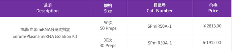 血清/血漿RNA分離試劑盒采用酚/胍鹽裂解液提取血清/血漿中總RNA(含有mRNAs和miRNAs,通過(guò)特異性結(jié)合核酸的離心吸附柱和獨(dú)特的緩沖液系統(tǒng)方便、快捷地純化、洗脫RNA,可直接用于下游應(yīng)用,如realtime RT-PCR,Microarray 基因表達(dá)譜,NGS 測(cè)序等。